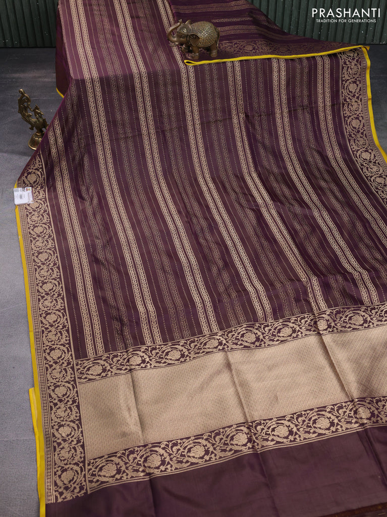 Banarasi uppada silk saree wine shade and yellow with allover thread & zari weaves and zari woven border