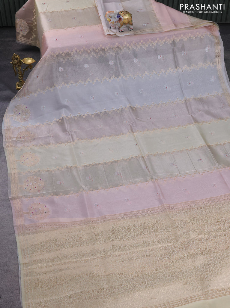 Banarasi tissue semi silk saree beige and baby pink with zari weaves & buttas and zari woven butta border