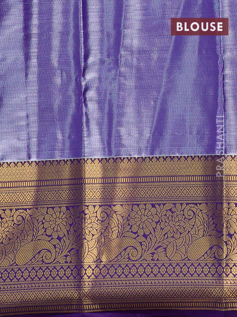 Bangalori tissue silk saree teal blue and purple with allover zari woven brocade weaves and long zari woven border