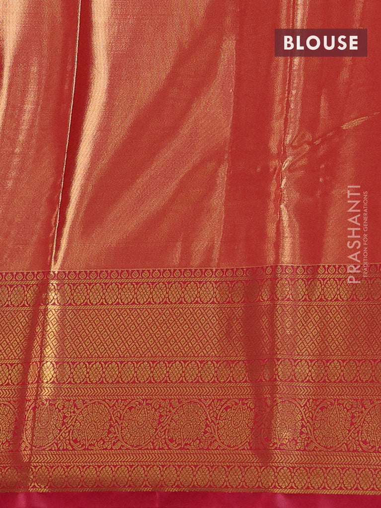 Bangalori tissue silk saree red and violet with allover zari woven brocade weaves and long zari woven border