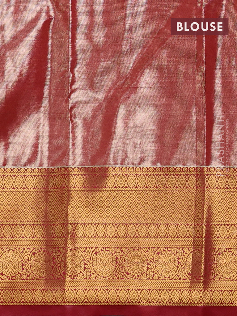 Bangalori tissue silk saree peach shade and reddish pink with allover zari woven brocade weaves and long zari woven border