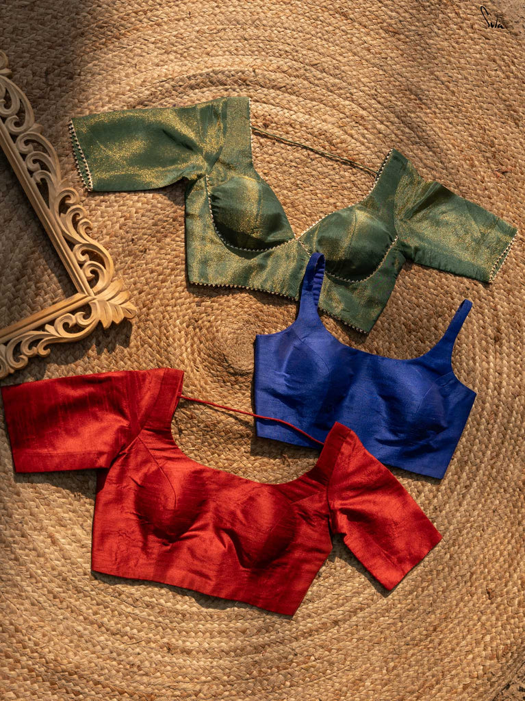 Comfort and style in one package! With the Bansuri combo, you get three blouses made from artificial silk and viscose zari. Each piece feels just as good as it looks, giving you all-day comfort without compromising on style.