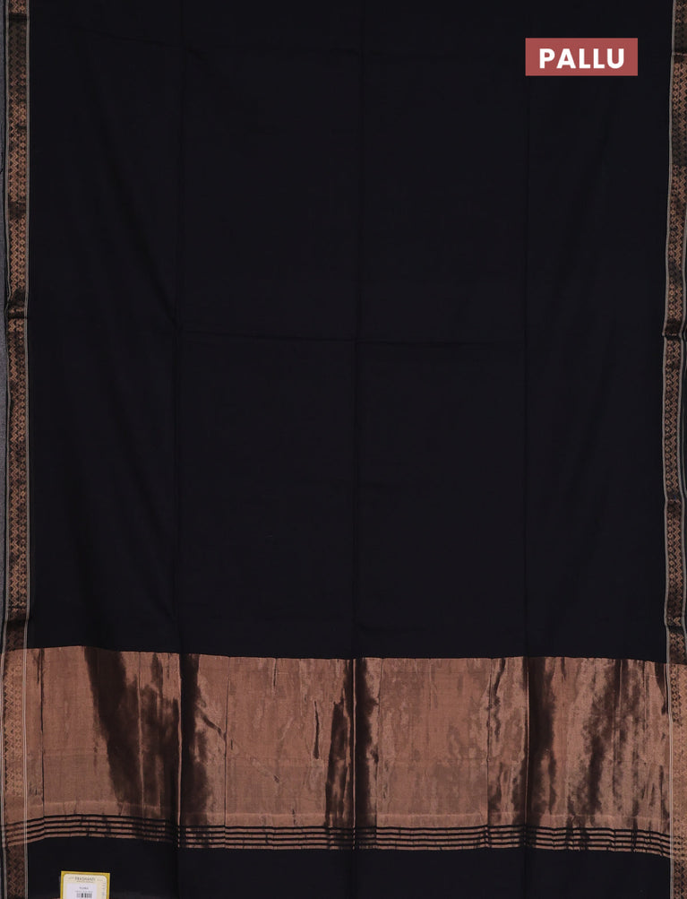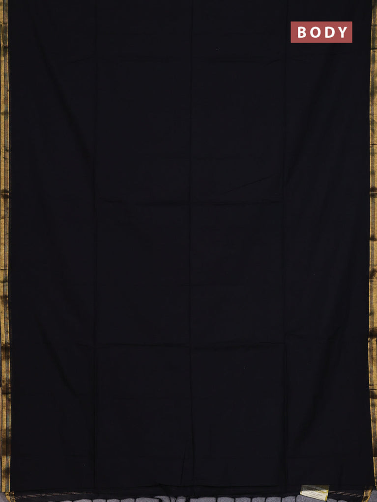 Bengal soft cotton saree black and cs blue with plain body and zari woven border