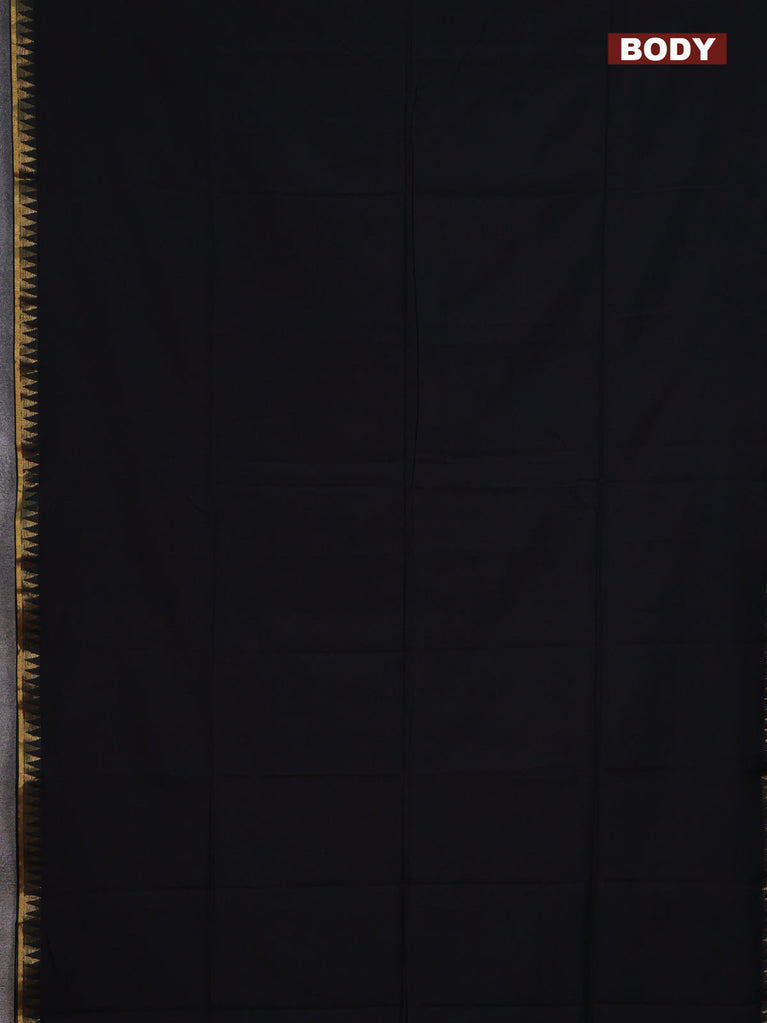 Bengal soft cotton saree black and green with plain body and zari woven border