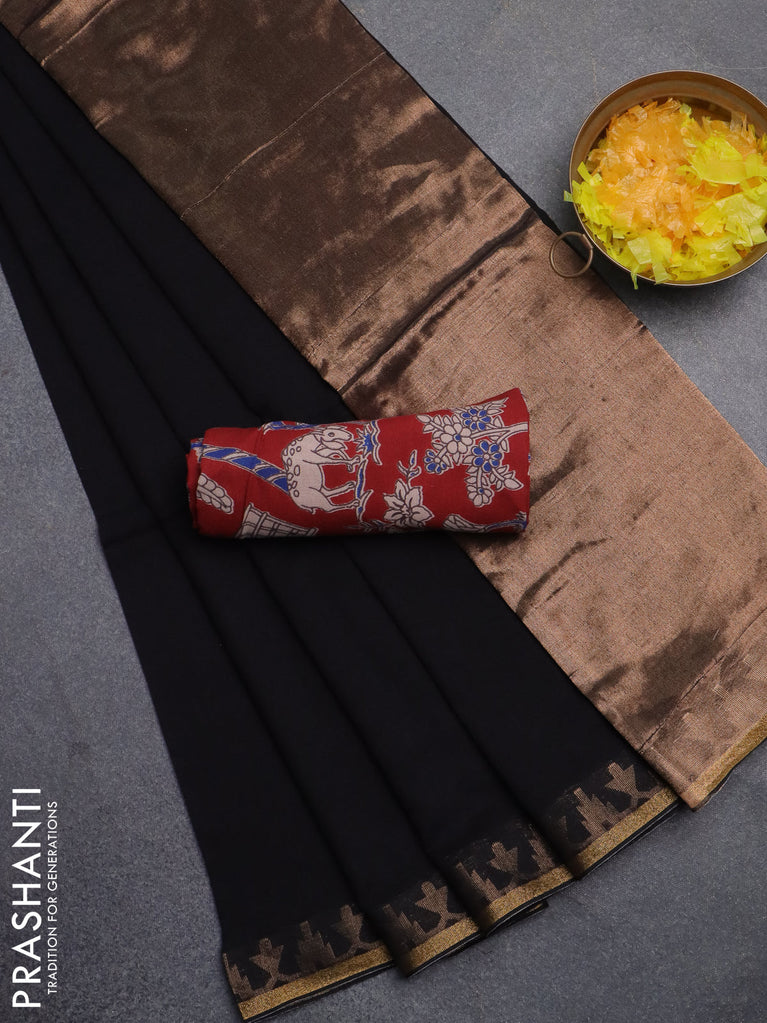 Bengal soft cotton saree black and maroon with plain body and zari woven border