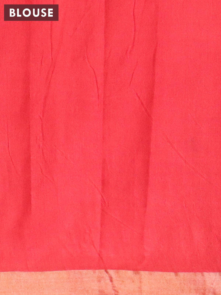 Bhagalpuri saree green and pink with allover ikat prints and simple zari border