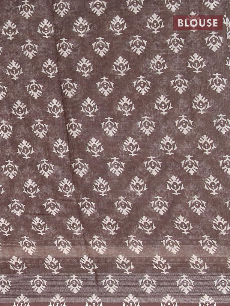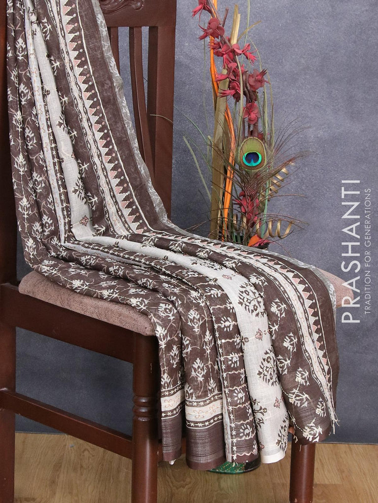 Bhagalpuri saree dark sap green with allover prints & kantha stitch work and silver zari woven border