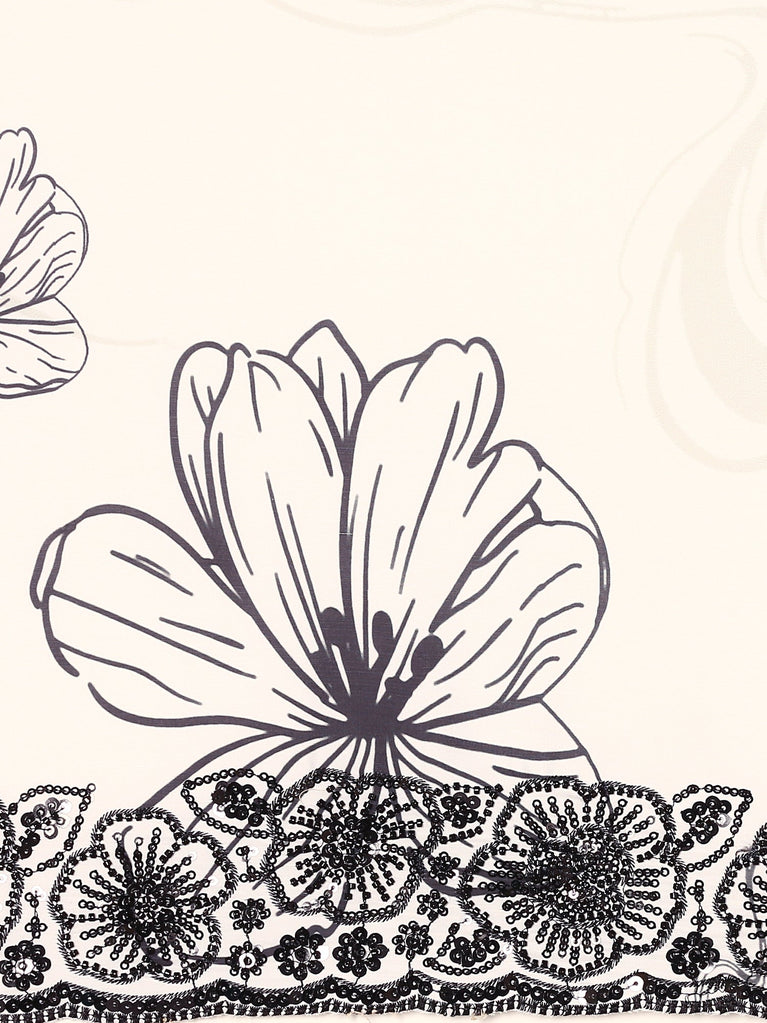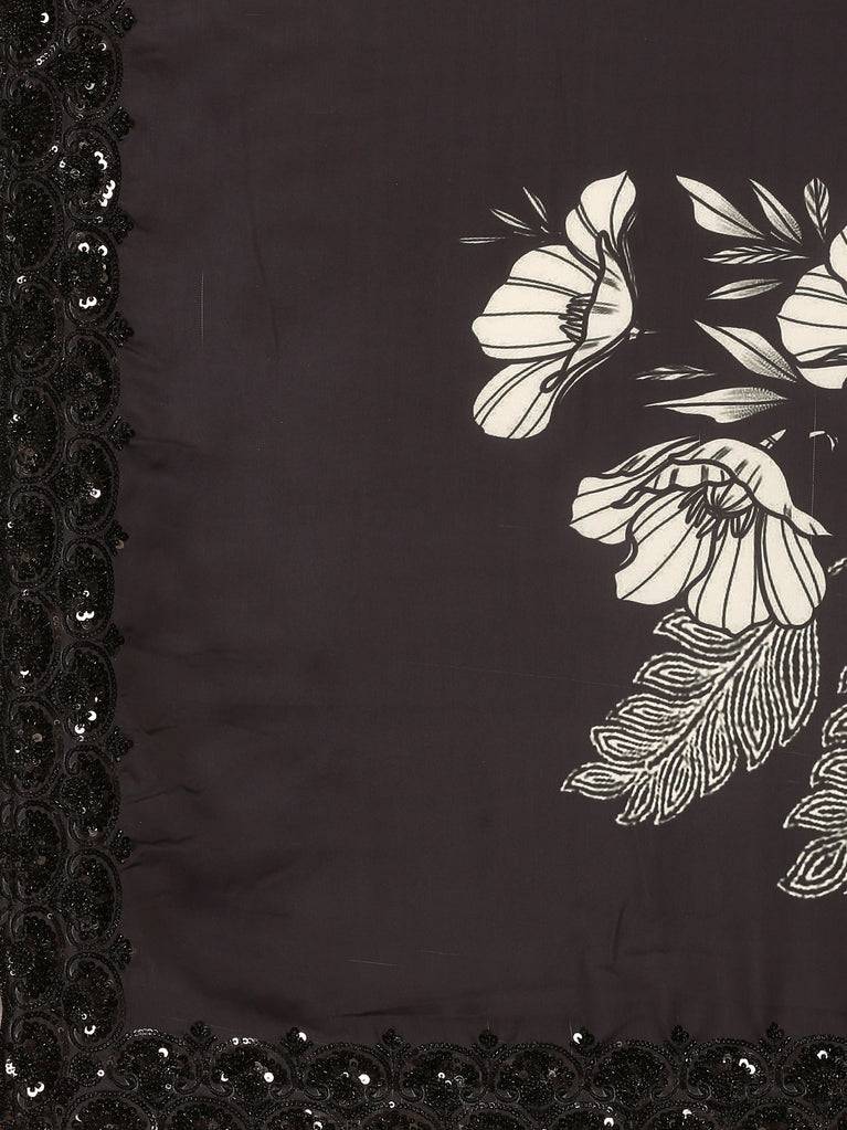Black & white satin printed saree with hand embroidery & ready made blouse