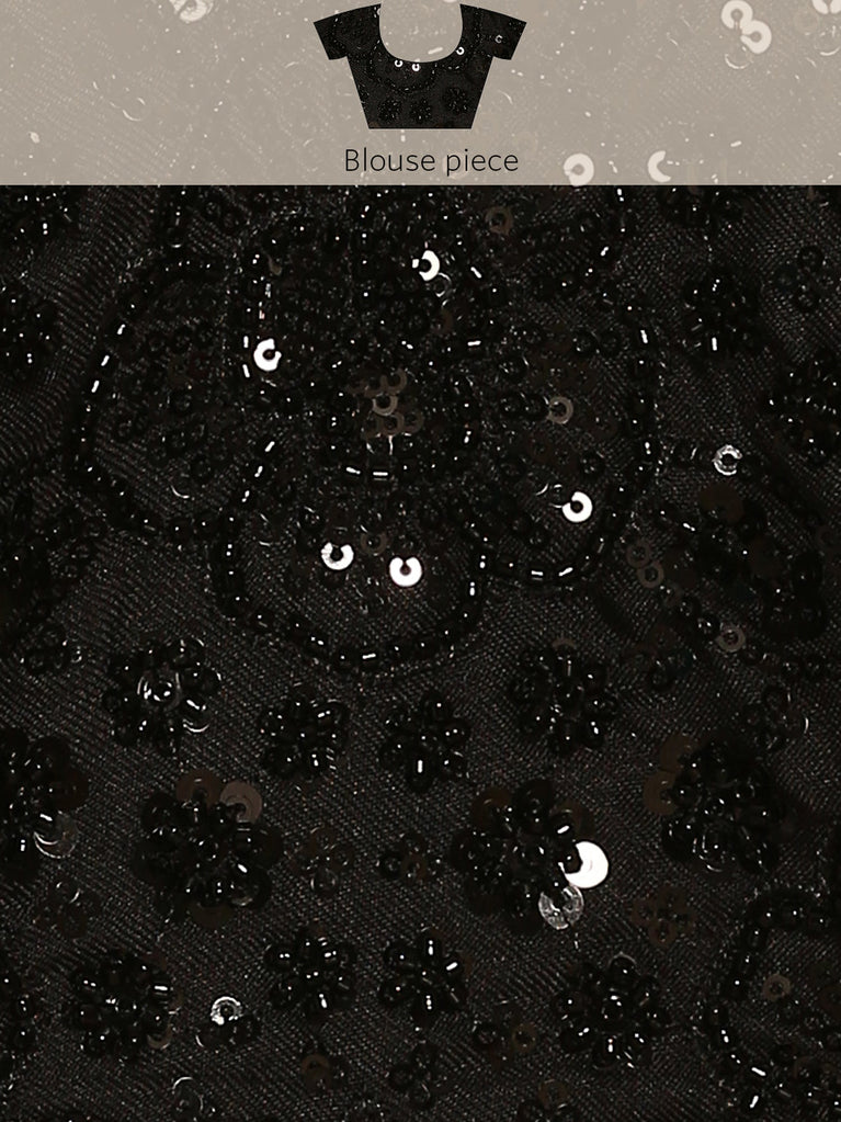 This black and white satin saree features elegant printed patterns enhanced with delicate hand embroidery, offering a timeless and refined look. Crafted for comfort and style, it comes with a ready-made blouse, making it easy to wear for any special occasion. Perfect for those who appreciate classic sophistication with a modern touch.The saree is accompanied by a stylish, ready-made blouse designed to complete your look.
