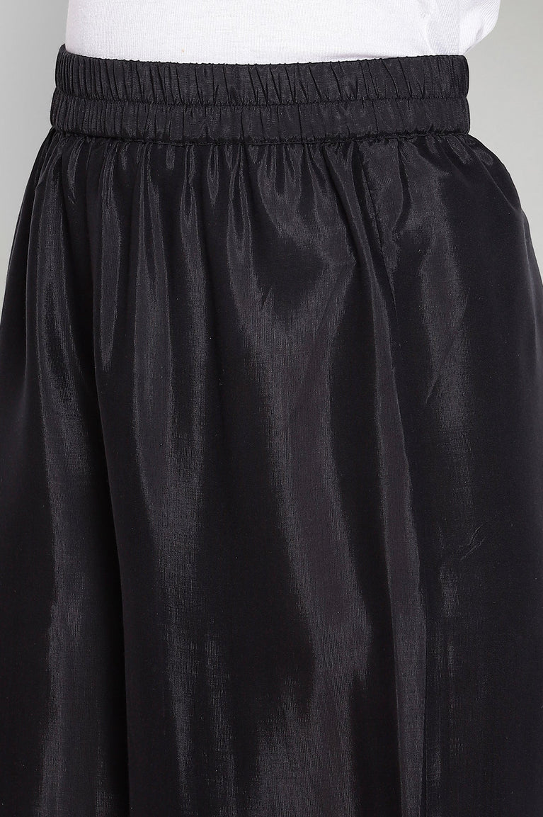 Black Embroidered Semi Flared Cotton Palazzo With Side Pockets