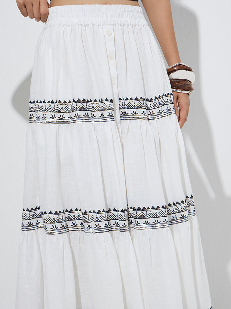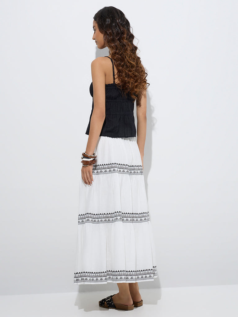 Bombay Paisley White Printed Cotton Tiered Skirt
