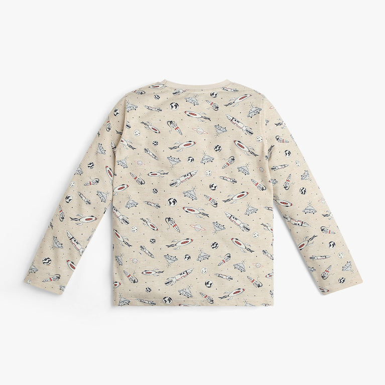 This sleepwear set combines comfort and style, making it perfect for a good night's sleep. The soft cotton fabric ensures breathability and a cozy feel, while the all-over print adds a fun and playful touch. Designed with a regular fit, it offers a relaxed and comfortable wear, ideal for active boys.