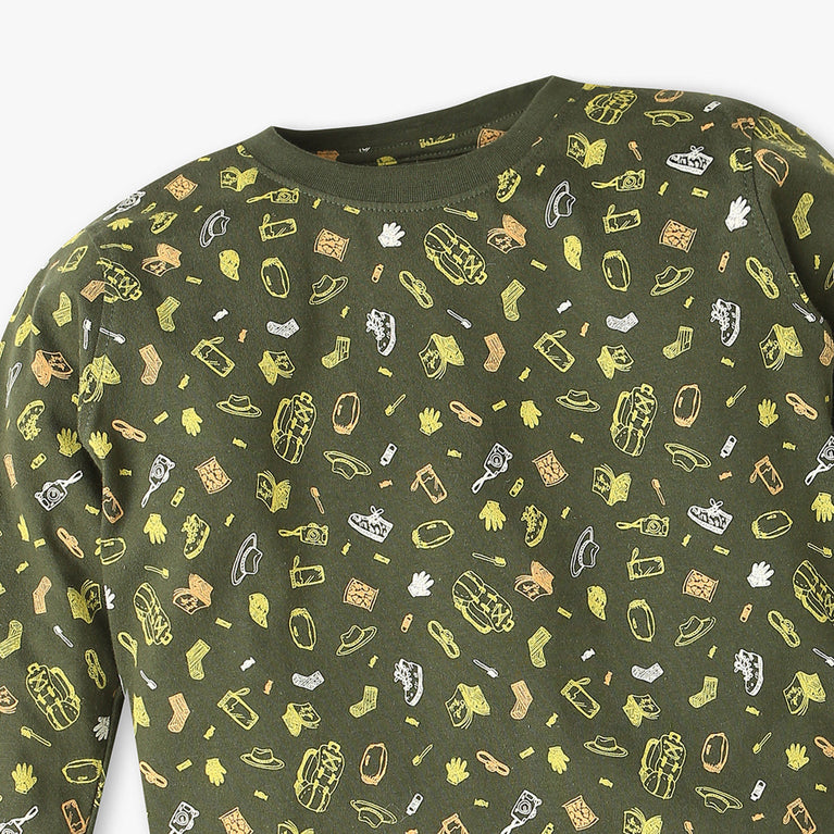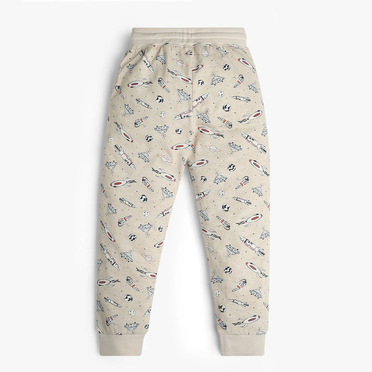Boys All Over Print Crew Neck Full Sleeve Conversational Print T-Shirt With Track Pant Sleepwear Set