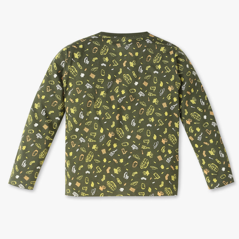 These all over print pattern sweat tee has hoodie and full sleeve. Made from cotton, your kid's feel comfortable wearing the product.