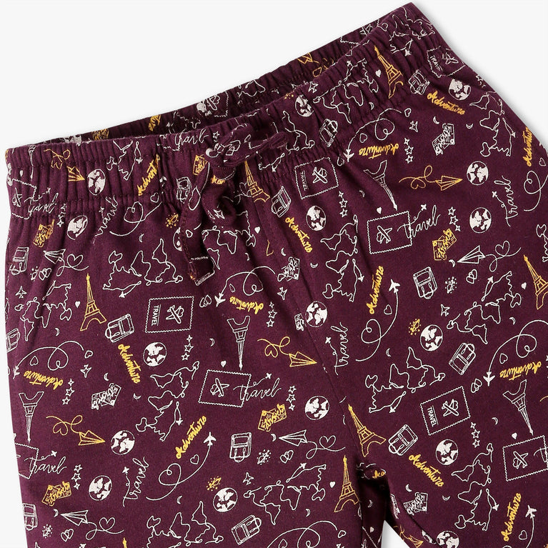 Boys All Over Print Crew Neck T-Shirt With Trackpant Sleepwear Set