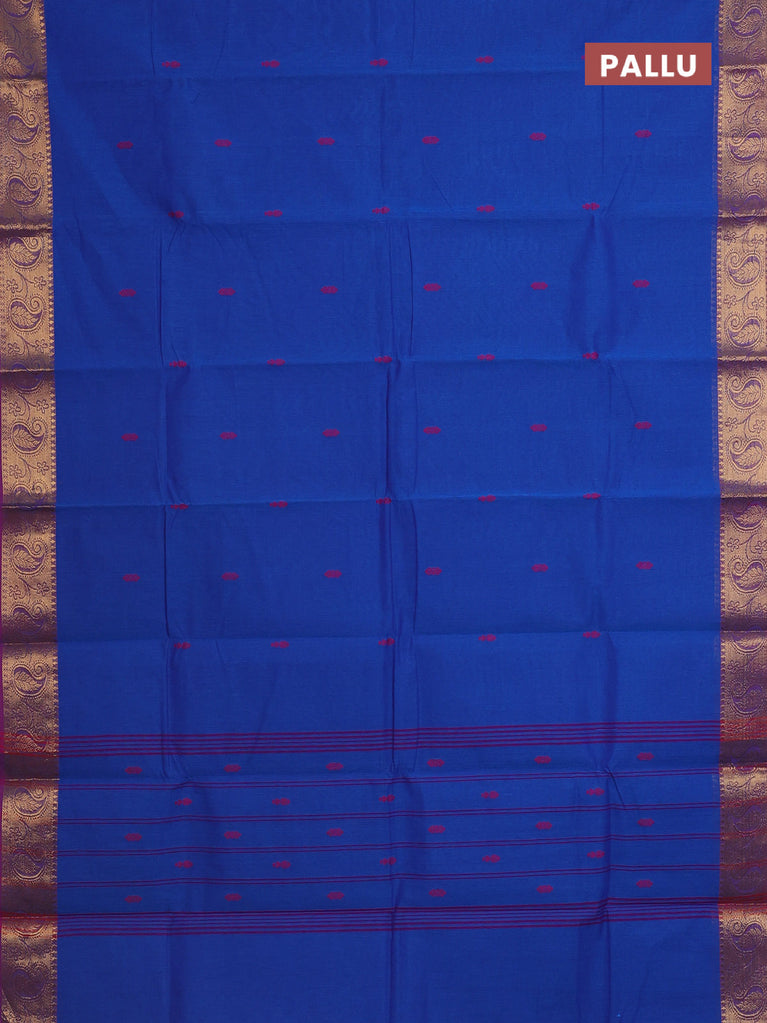 Chettinad cotton saree cs blue and dark pink with thread woven buttas and zari woven border