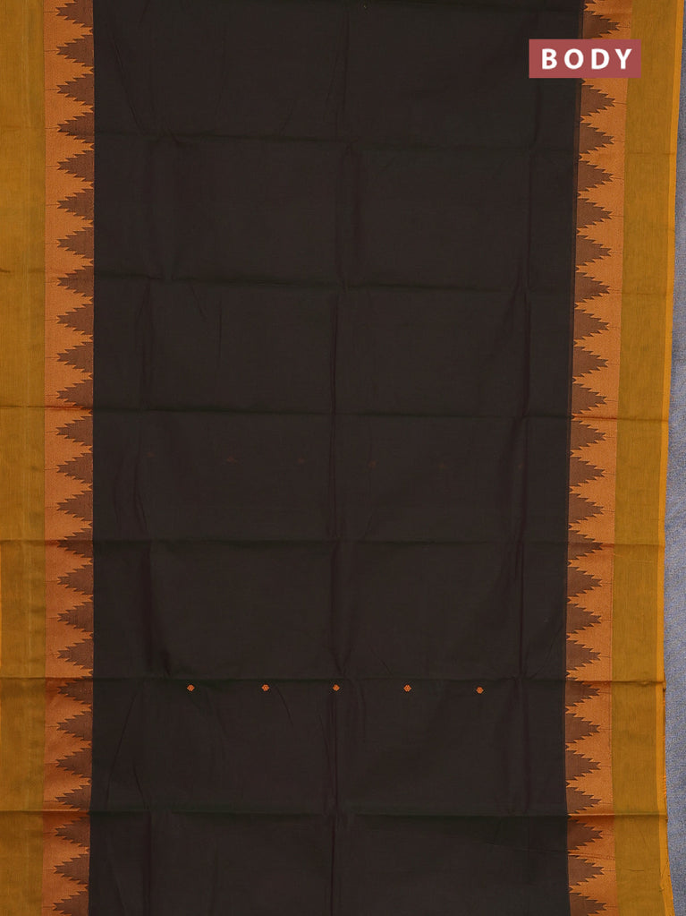 Chettinad cotton saree deep maroon and mustard yellow with plain body and temple design zari woven bordrer