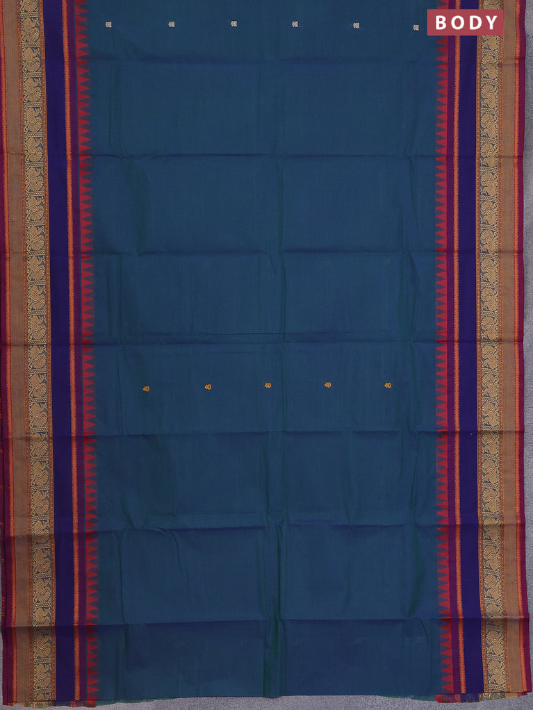 Chettinad cotton saree dark peacock blue and maroon with thread woven buttas and thread & zari woven border