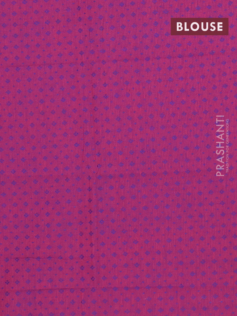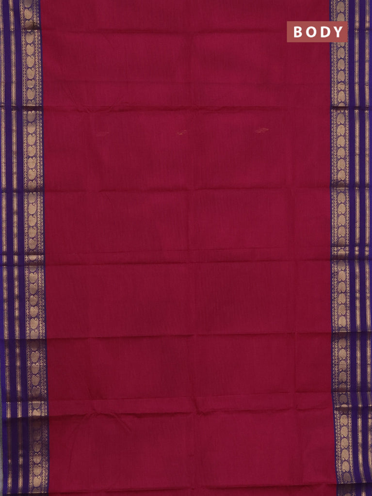 Chettinad cotton saree dual shade of blue and dark magenta pink with rangoli butta prints and rettapet zari woven border
