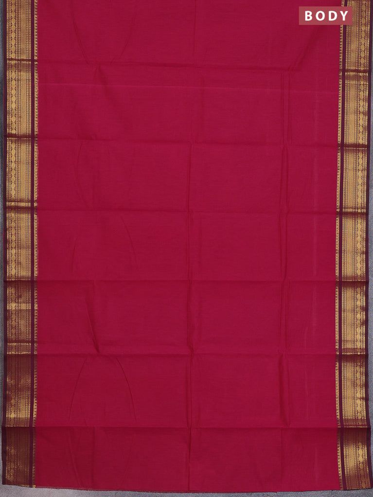 Chettinad cotton saree dark magenta pink and green with thread woven buttas and rettapet zari woven border
