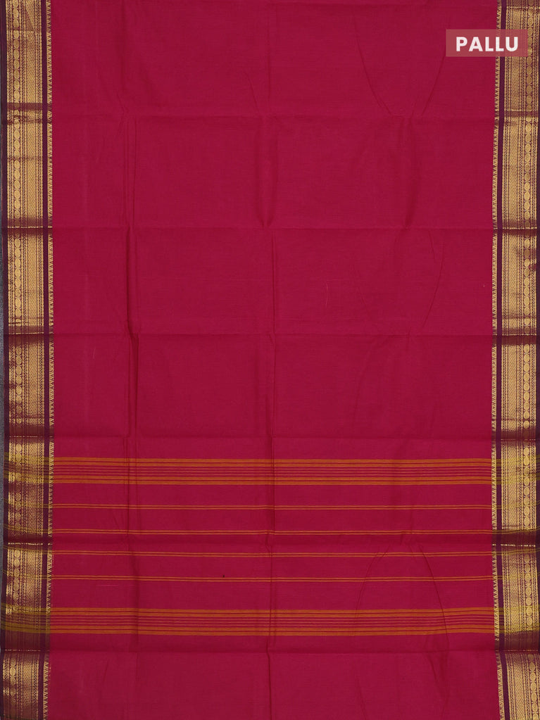 Chettinad cotton saree dark pink and magenta pink with thread woven buttas and zari woven border