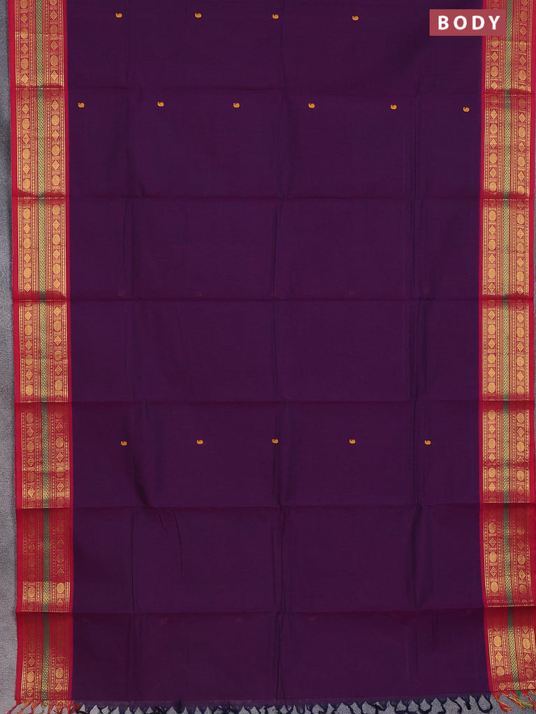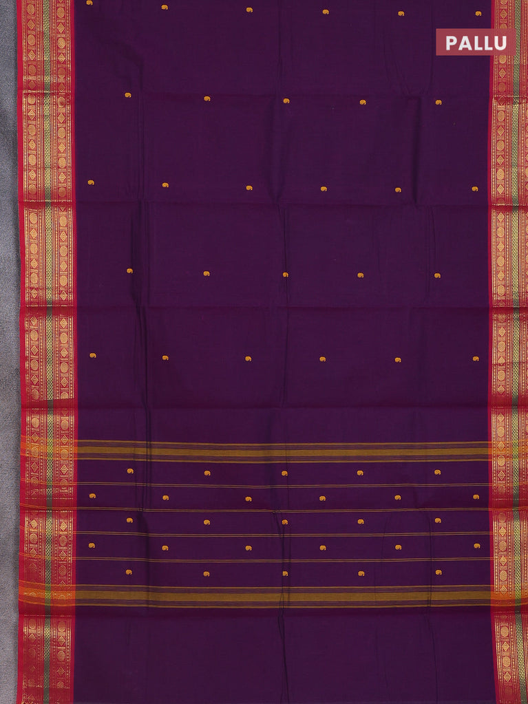 Chettinad cotton saree deep jamun shade and red with thread woven buttas and zari woven border