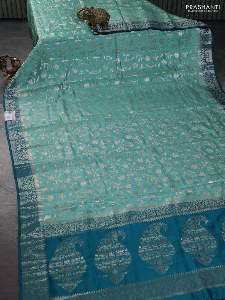 Chiniya silk saree peacock blue with allover zari weaves & buttas in borderless style