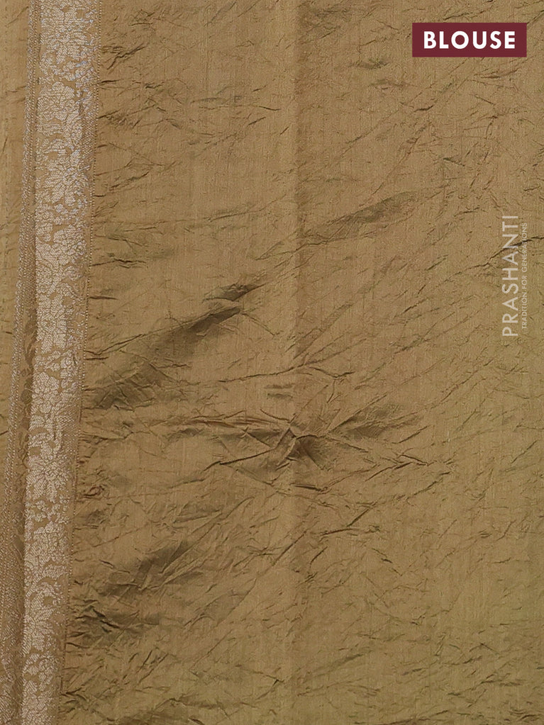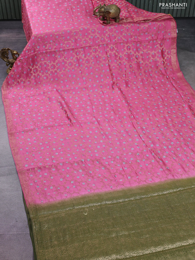 Chiniya silk saree peach pink and mehendi green with allover zari weaves & bandhini prints and zari woven border