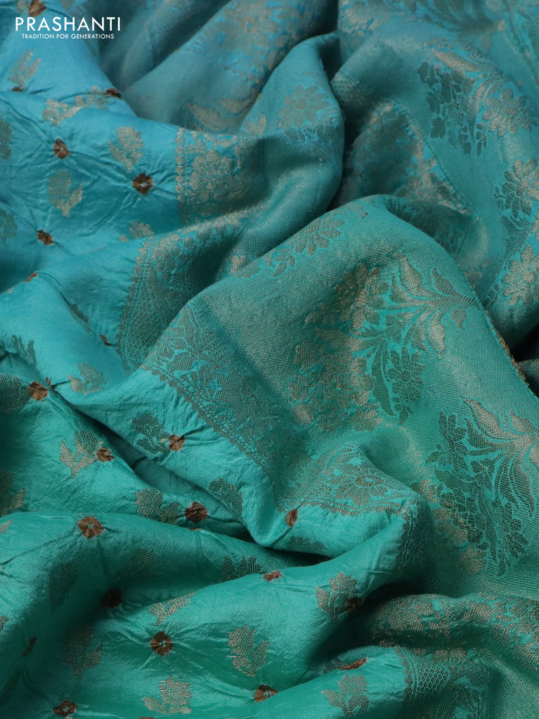 Chiniya silk saree pastel blue and teal green with allover zari buttas & bandhini prints and zari woven border