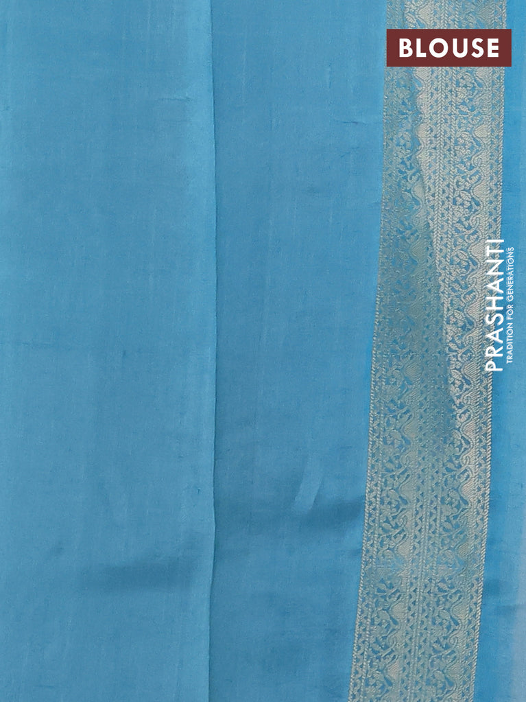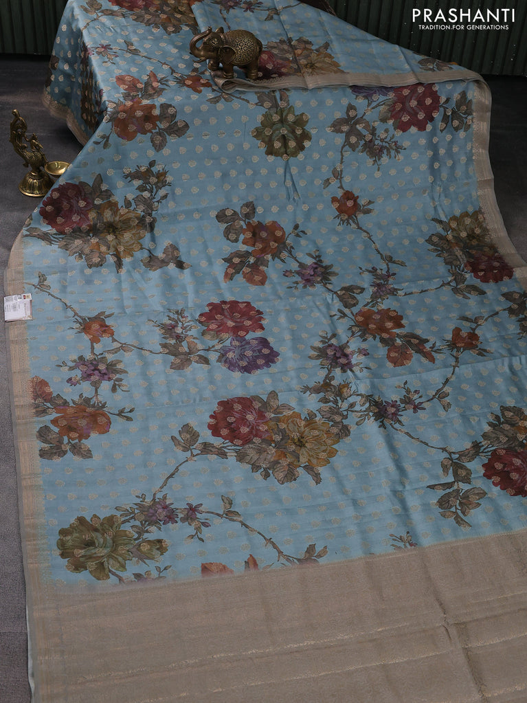 Chiniya silk saree pastel blue with zari woven buttas & digital prints and zari woven border