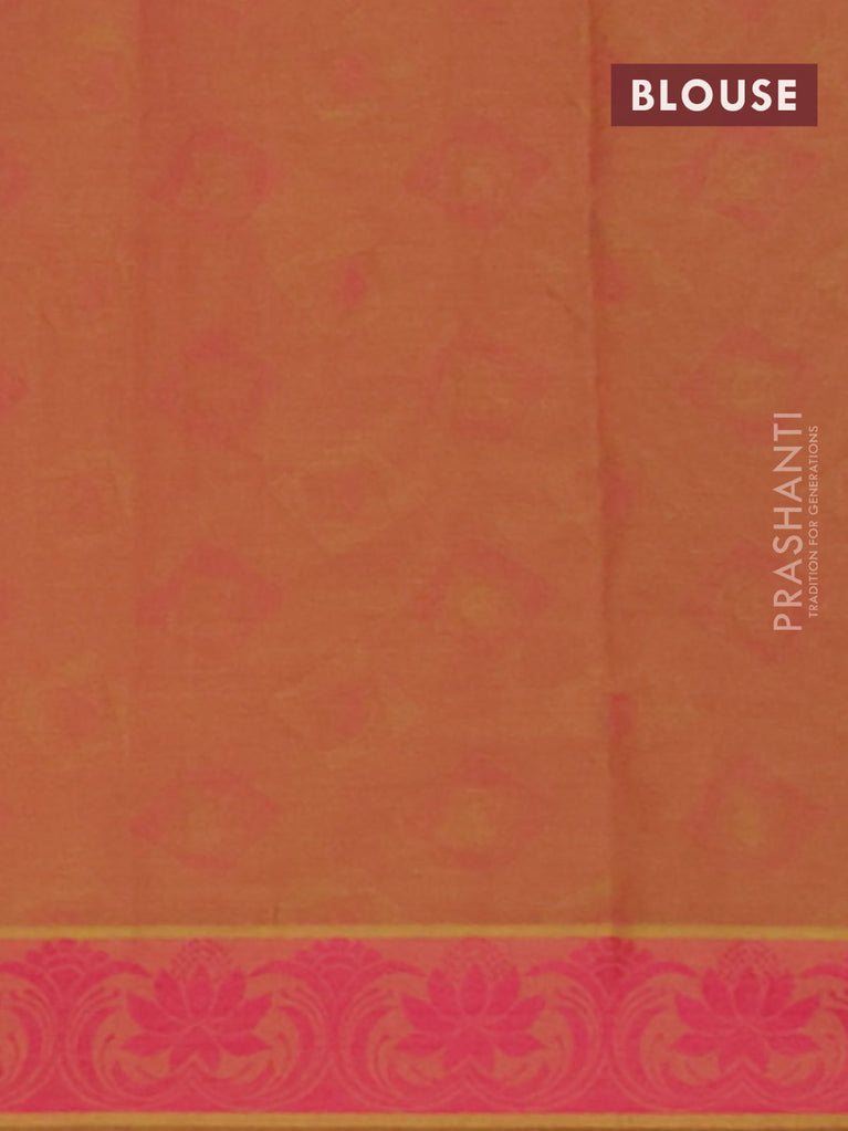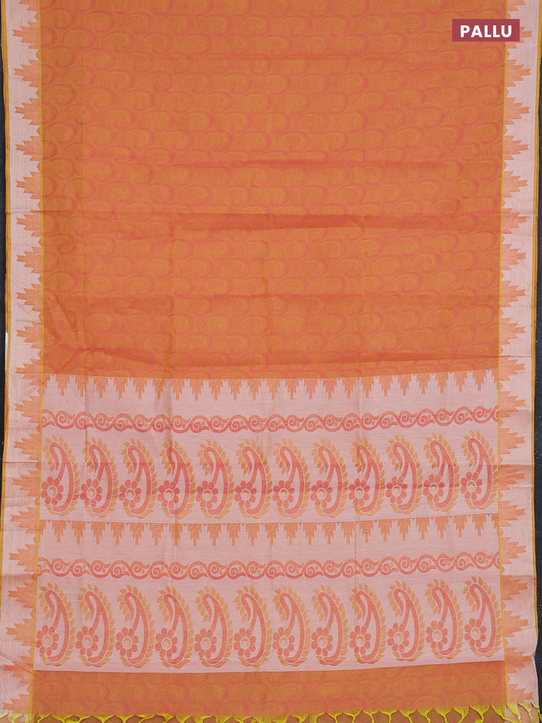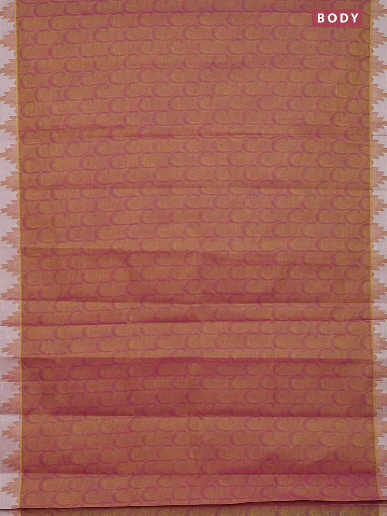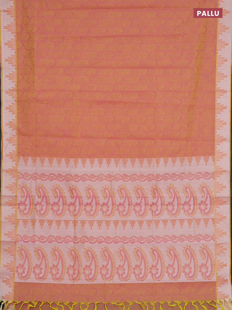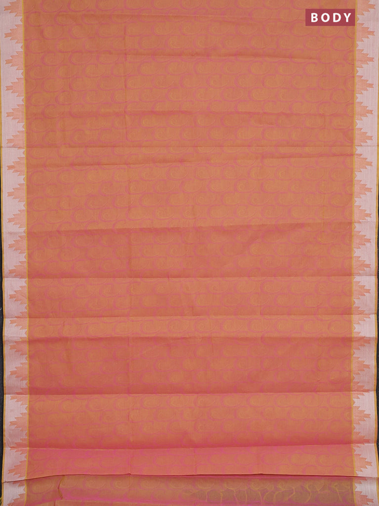 Coimbatore cotton saree dual shade of pinkish yellow with allover self emboss and thread woven border