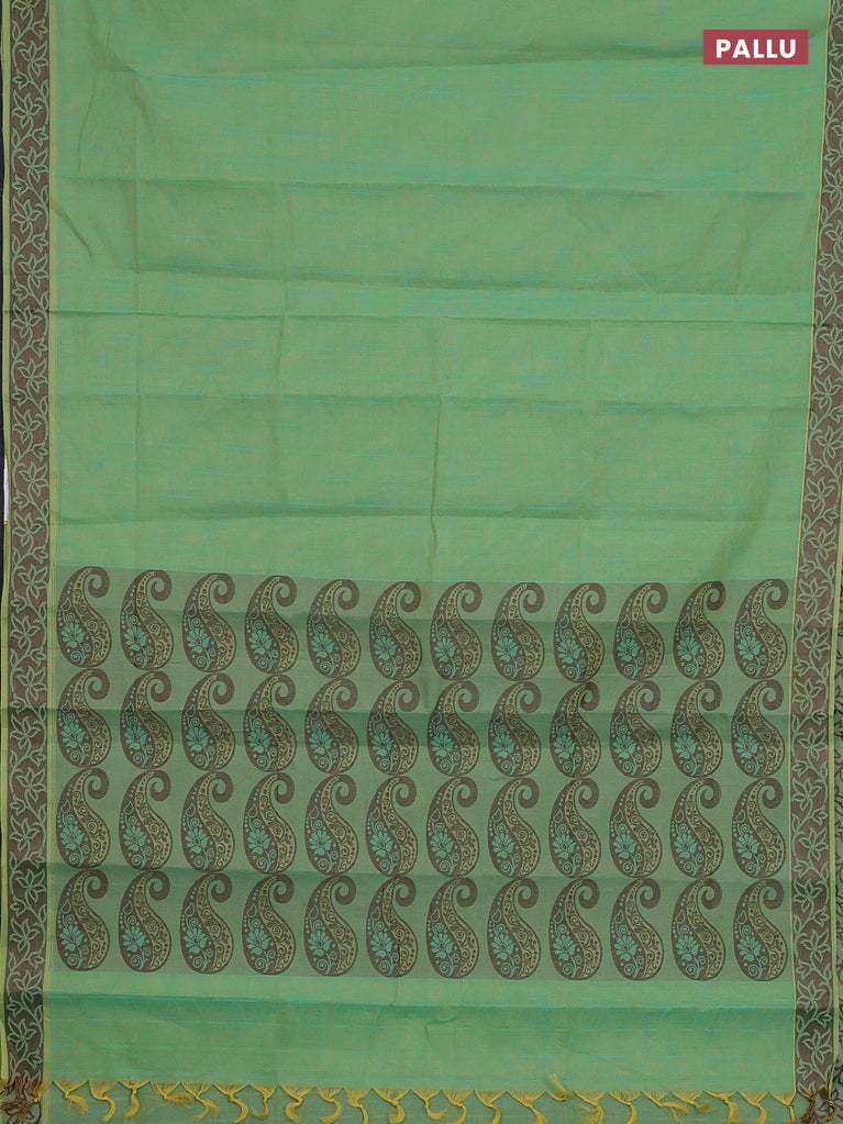 Coimbatore cotton saree green and deep maroon with allover self emboss and thread woven border