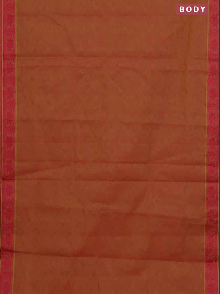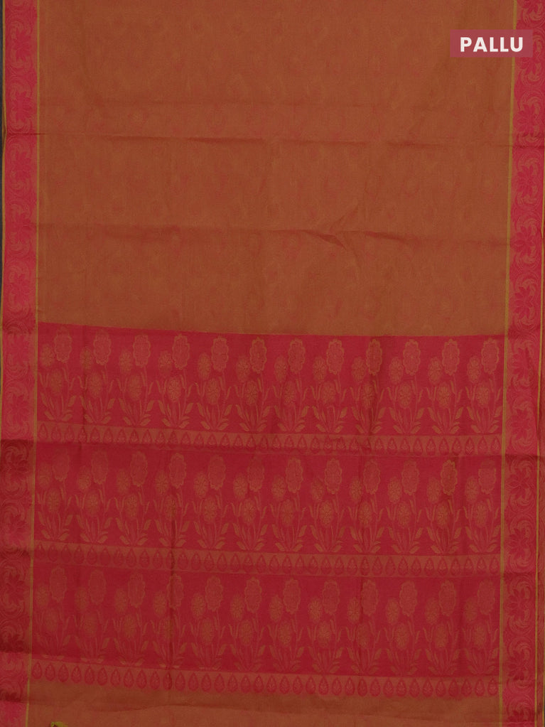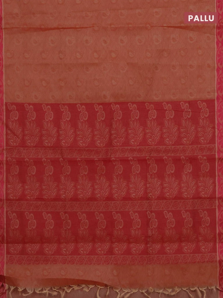 Coimbatore cotton saree dual shade of yellowish pink with allover self emboss and thread woven border