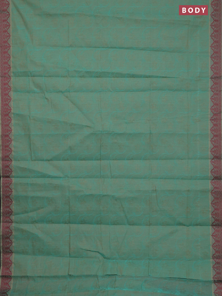 Coimbatore cotton saree dual shade of teal bluish sandal and maroon with allover self emboss and thread woven border