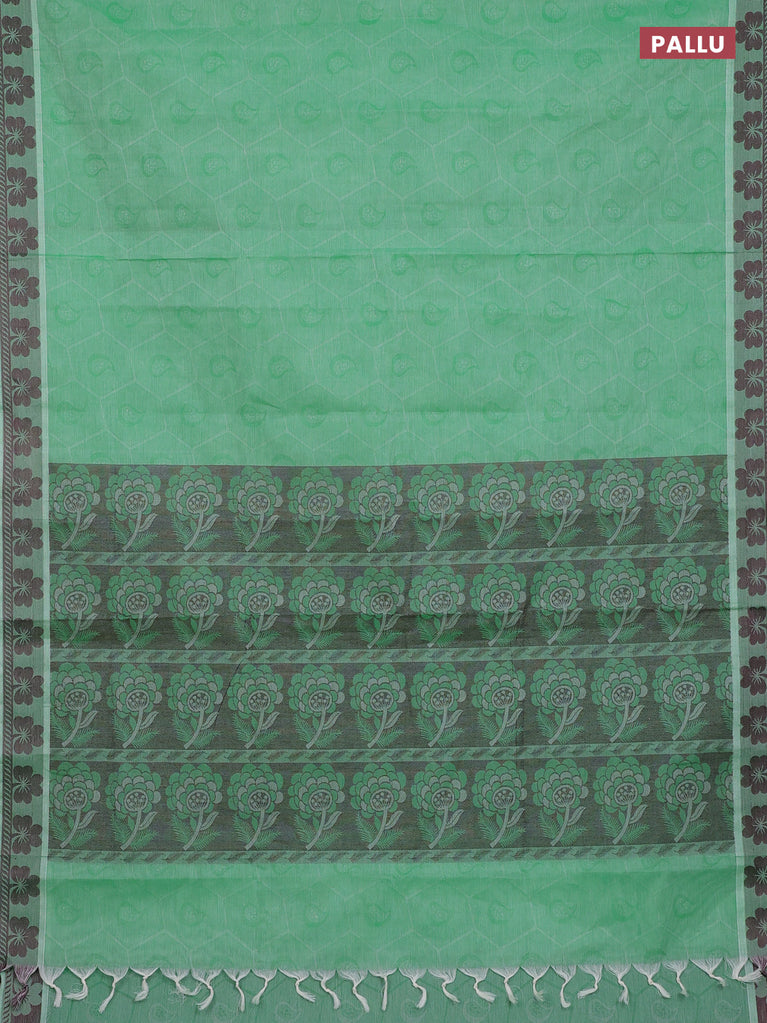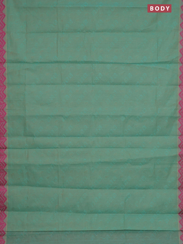 Coimbatore cotton saree green and pink with allover self emboss and thread woven border