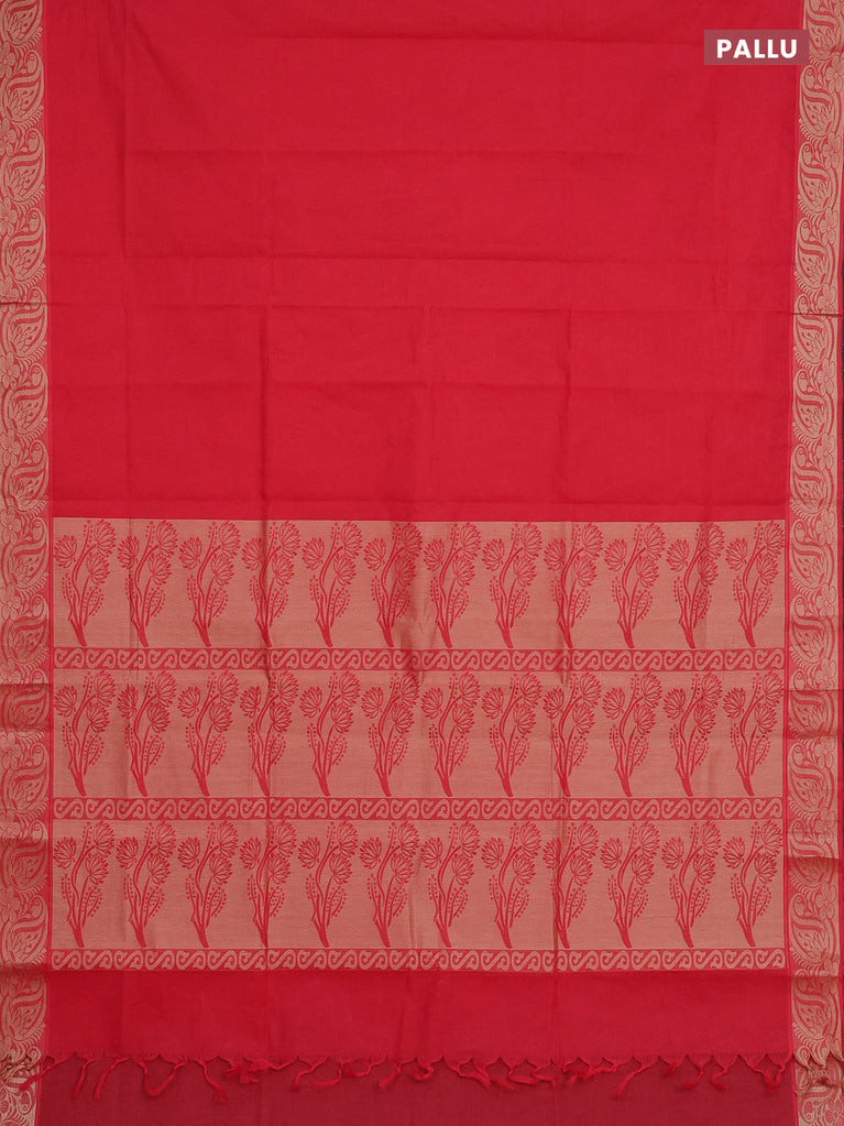 Coimbatore cotton saree red with allover self emboss and thread woven border