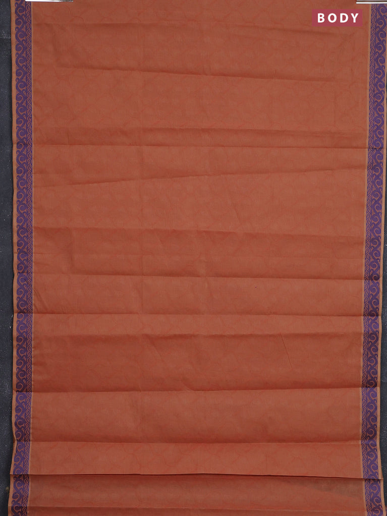 Coimbatore cotton saree rust shade and brown with allover self emboss and thread woven border