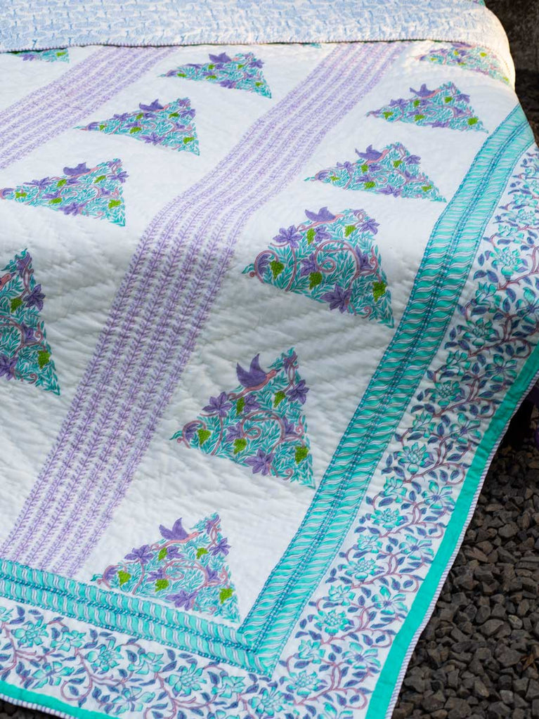 Fields of Lavender Block Printed Cotton Cushion Cover - 16 Inch
