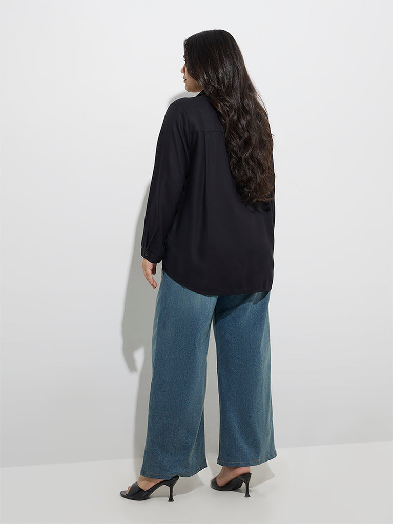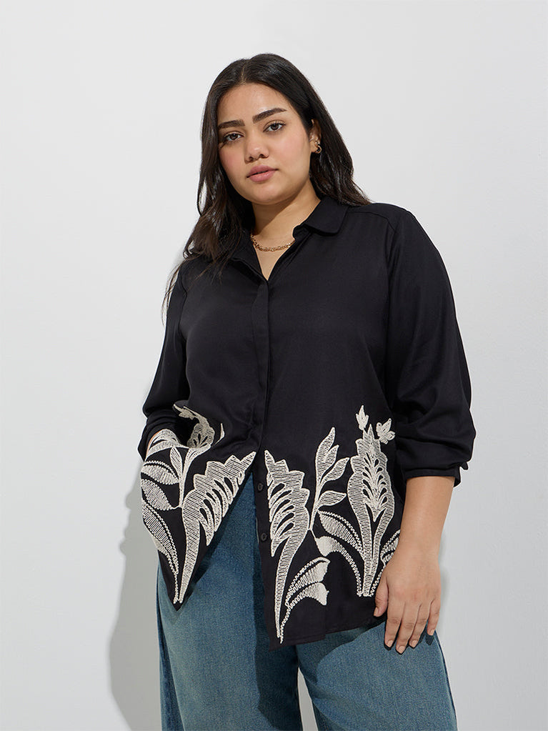 This black shirt from Gia is elevated with intricate botanical embroidery that brings depth and character to its classic silhouette. Crafted from high-quality fabric, it’s tailored with a crisp collar and full sleeves, striking the perfect balance between structure and softness.