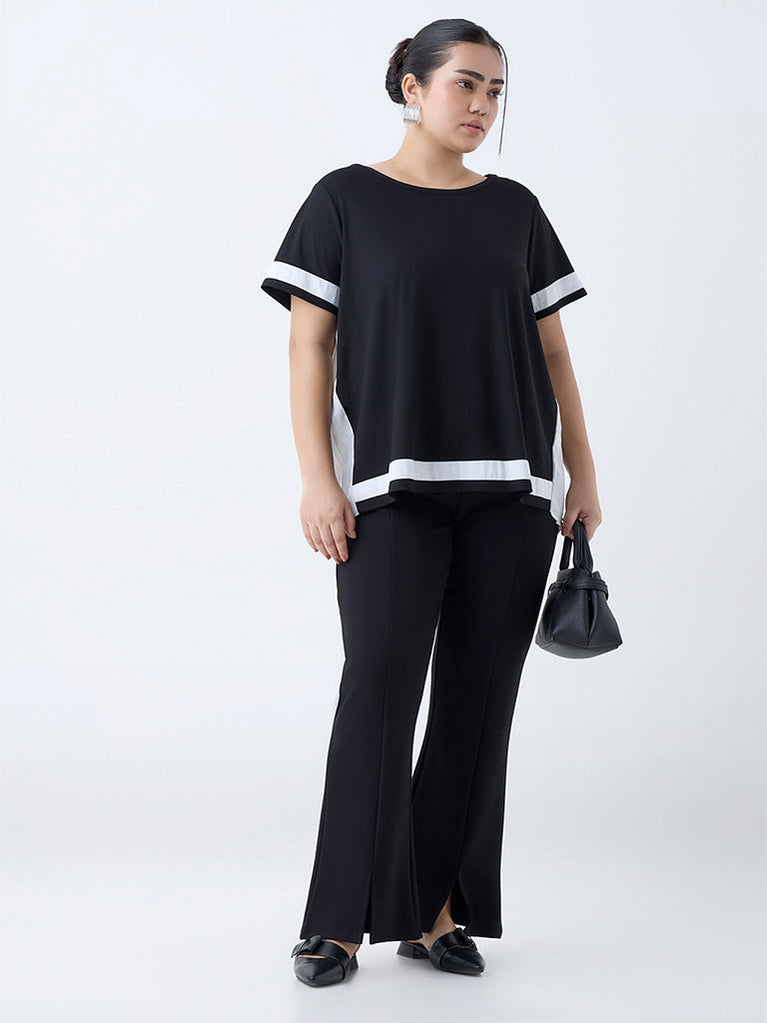 This black T-shirt from Gia is crafted from a breathable, soft-touch fabric that feels easy through long hours. The contrast collar adds a clean pop of definition, while the full sleeves offer comfortable coverage. A versatile everyday essential designed to fit and flatter with minimal effort.