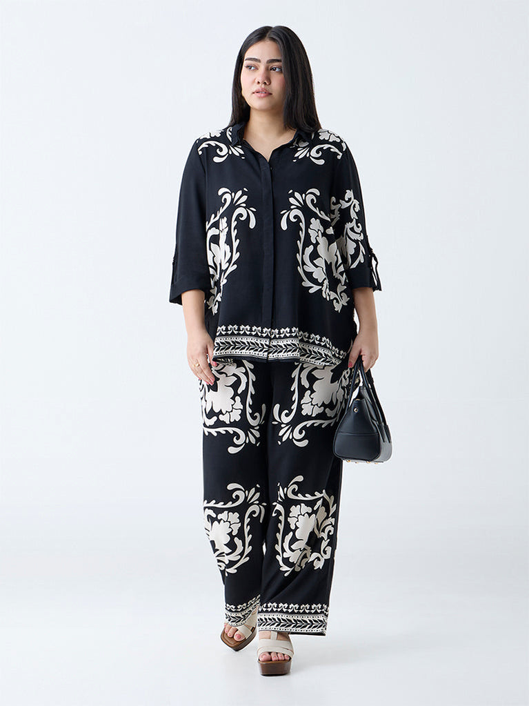 Bring a touch of vintage grandeur to your casual assortment with this black shirt from Gia. Adorned with baroque-inspired patterns on a breathable fabric base, it’s styled with a collar, concealed button placket and three-quarter sleeves finished with buckle details.
