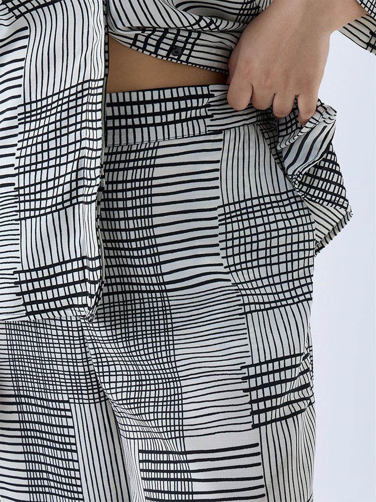 Gia presents these black pants featuring a subtle all-over print that adds visual interest without overwhelming the silhouette. Crafted from a breathable fabric, the design sits comfortably with an elasticated waistband and is finished with functional side pockets that bring ease to everyday dressing.