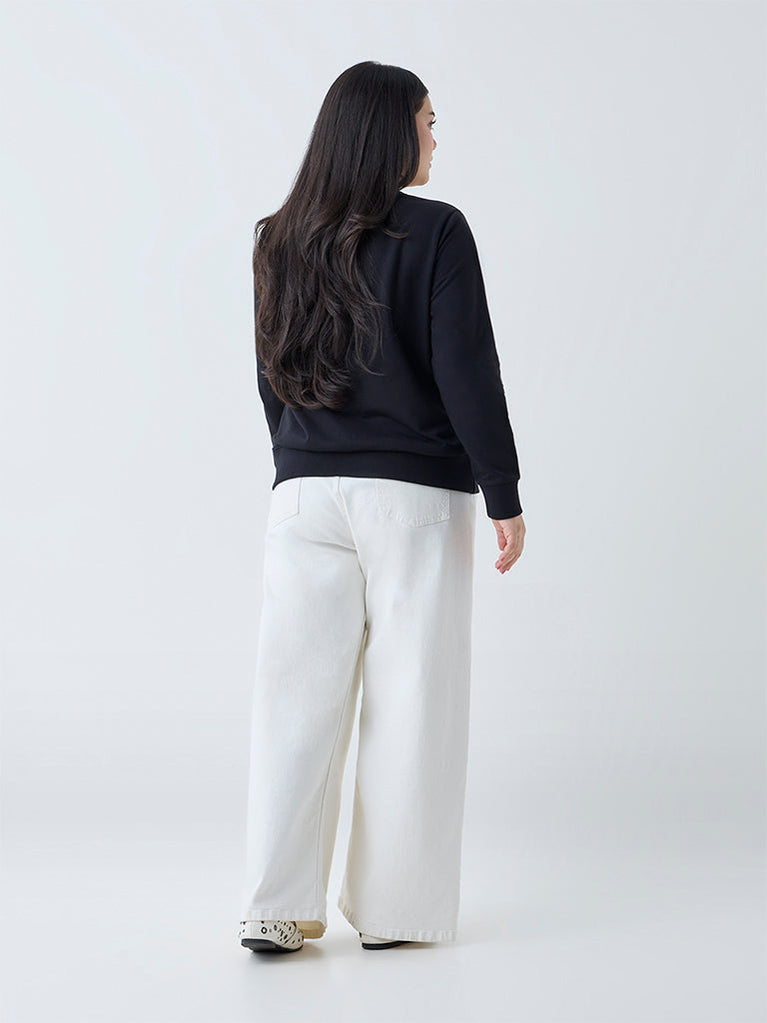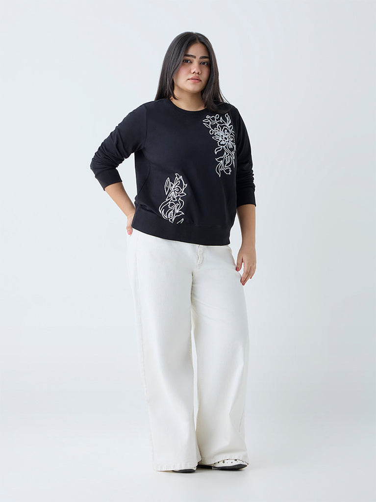 Gia Black Floral Embroidered Cotton Sweatshirt