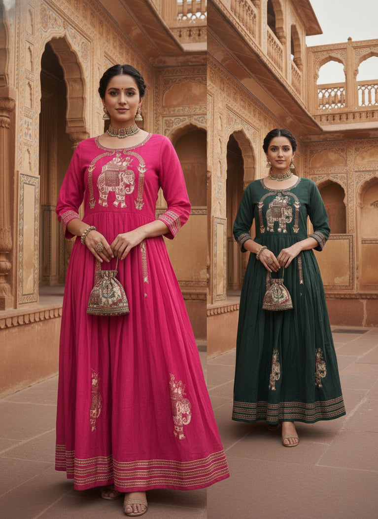 Embrace effortless elegance with this stunning green chinnon printed long dress. Crafted from lightweight chinnon fabric, this piece offers breathable comfort perfect for warm weather occasions. The vibrant green hue paired with intricate prints creates a sophisticated look that transitions beautifully from day to evening wear. The flowing silhouette flatters all body types while the long length adds a touch of grace and refinement. Ideal for festivals, celebrations, or casual gatherings, this dress lets you express your personal style with confidence and poise.