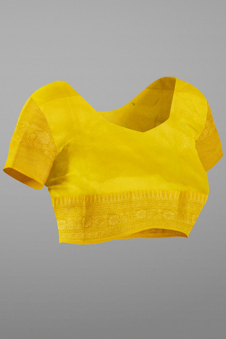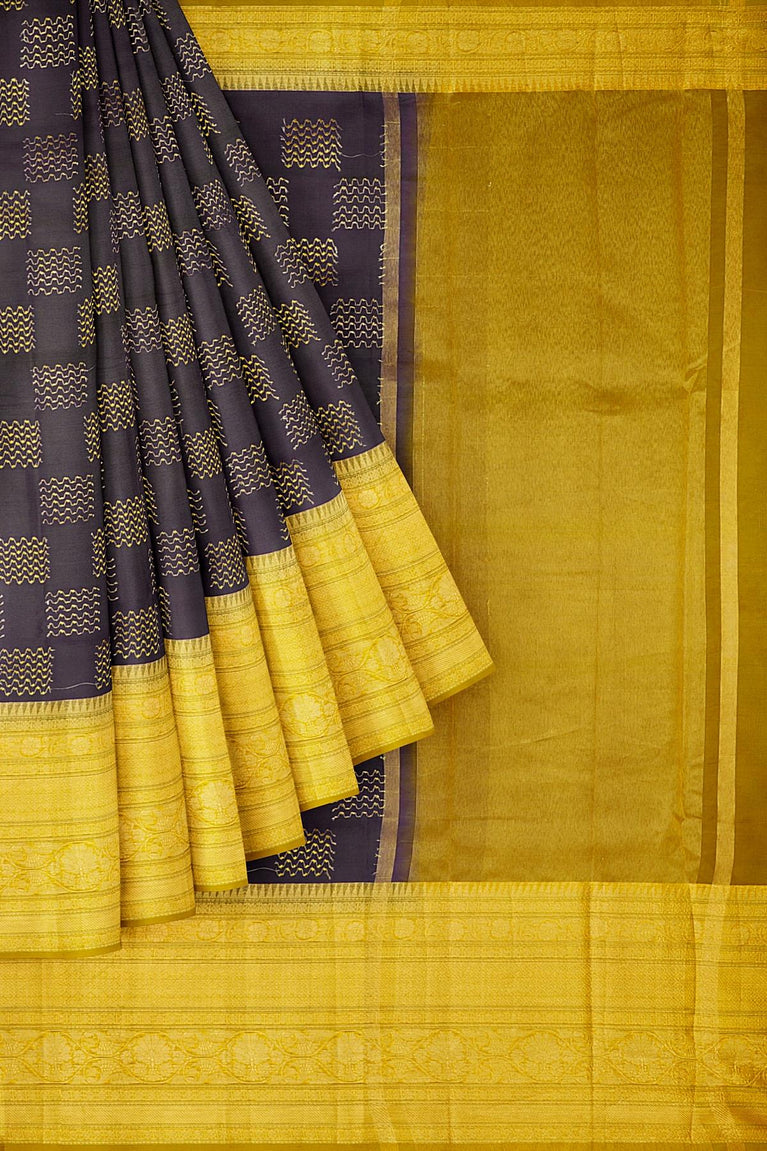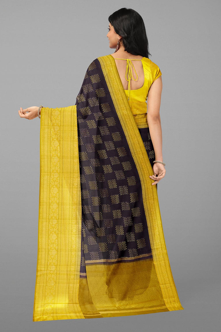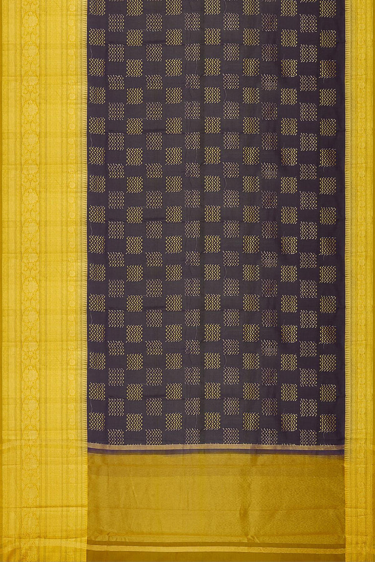 GREY and YELLOW CHECKS AND BUTTIS KORA Saree with BANARASI FANCY