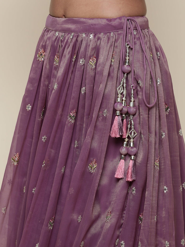 Lavender tissue embroidered Three piece ghagra set