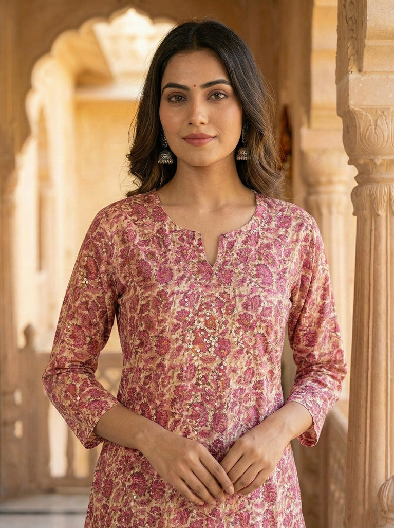 Elevate your ethnic wardrobe with this striking magenta crepe ensemble. The kurti features refined tailoring with a graceful silhouette, while the coordinating palazzo pants offer effortless comfort and movement. Crafted from quality crepe fabric, this set delivers a polished look perfect for festive occasions, celebrations, or everyday elegance. The rich magenta hue complements all skin tones, making it a versatile addition to your collection. Ideal for those who appreciate timeless style with contemporary appeal.