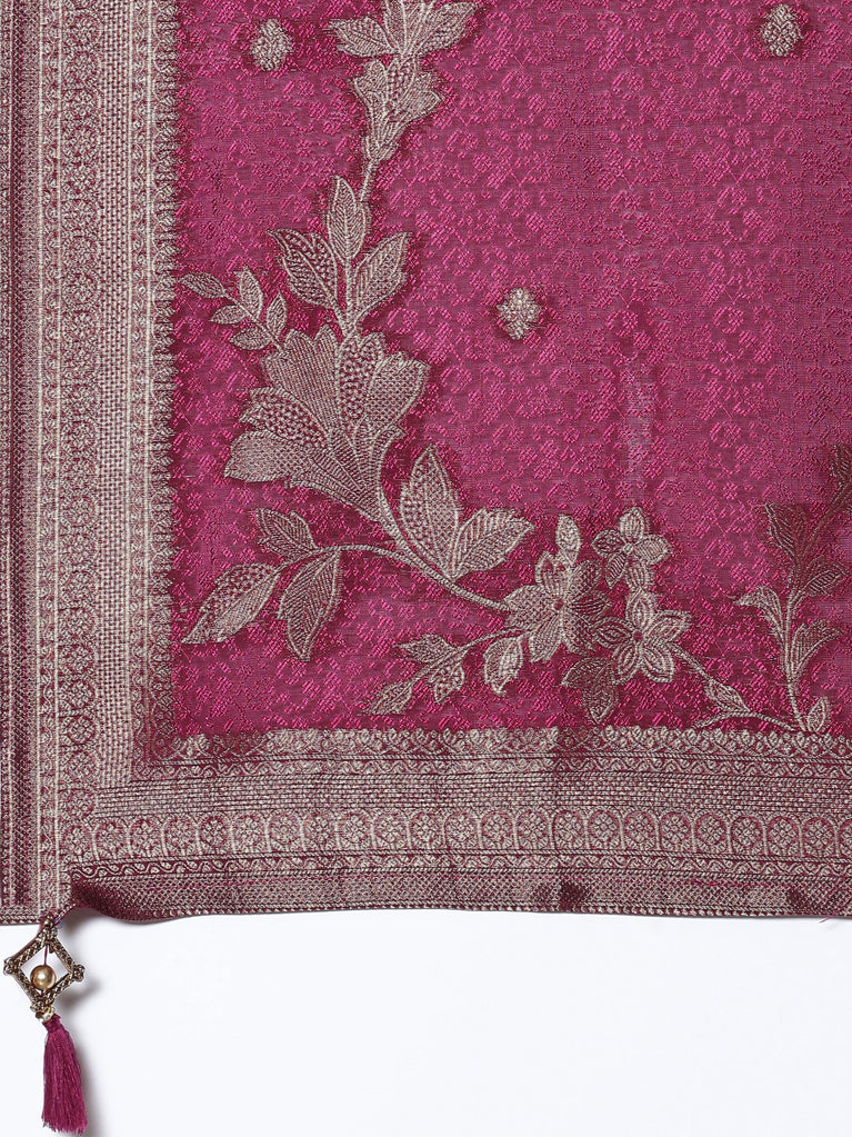 MAGENTA and SILVER FLORAL JAAL SILK BLEND Saree with SEMI PATTU