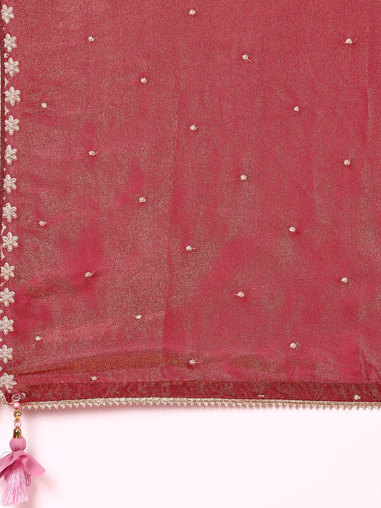Magenta Tissue Saree With Heavy Stone And Hand Embroidery Work