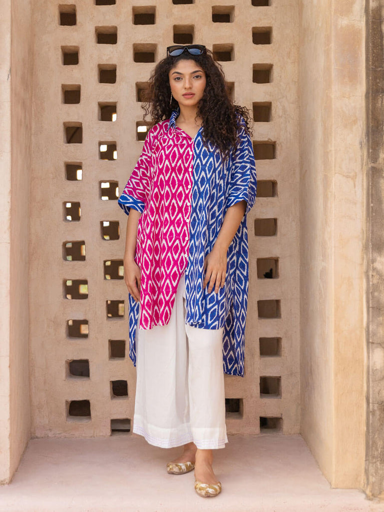 Set of 2 - Keya Indigo Cotton Tunic and Palazzo